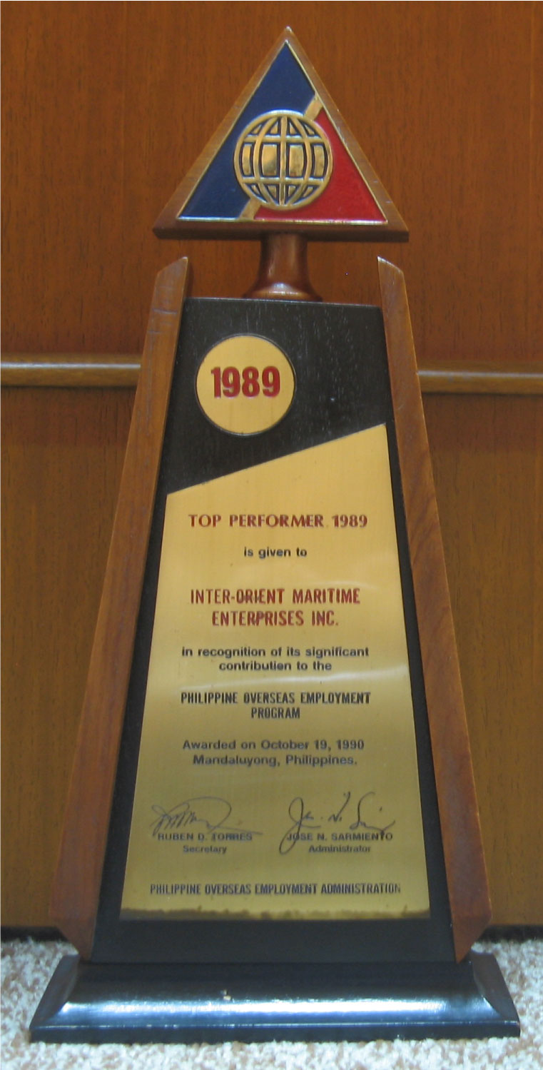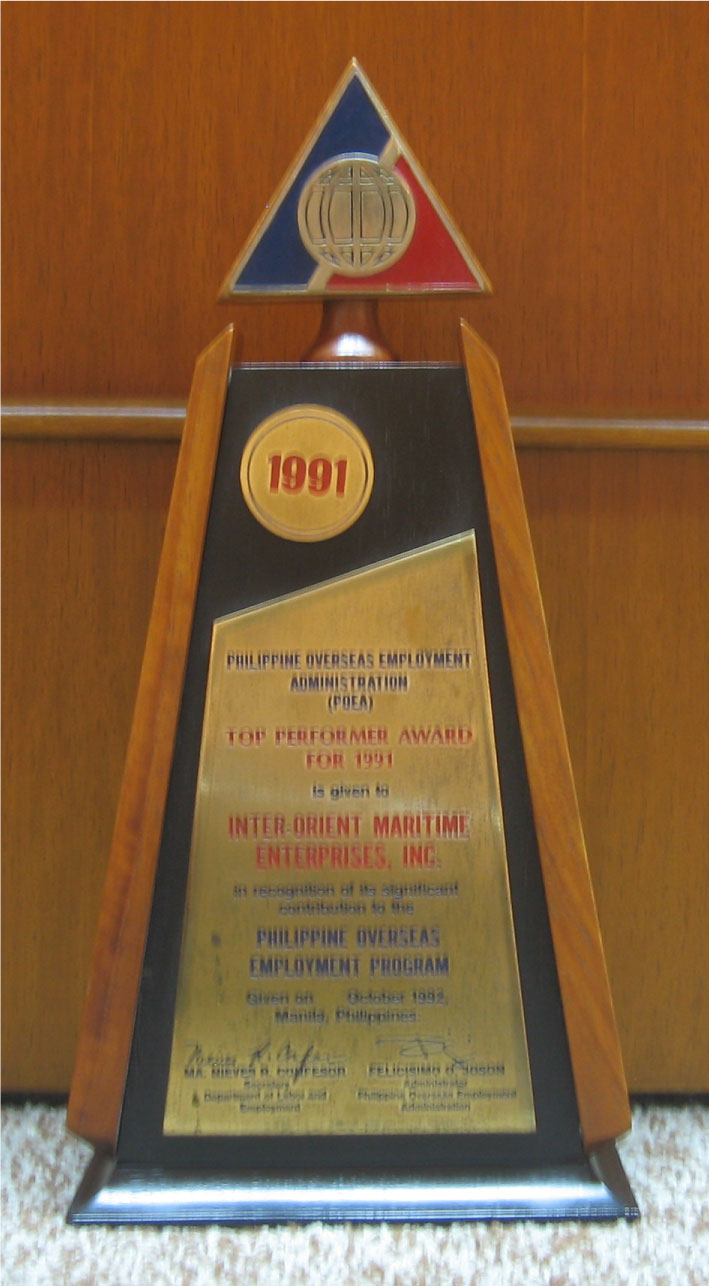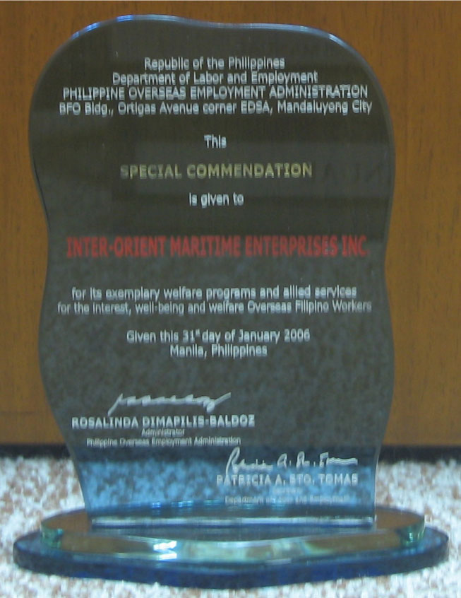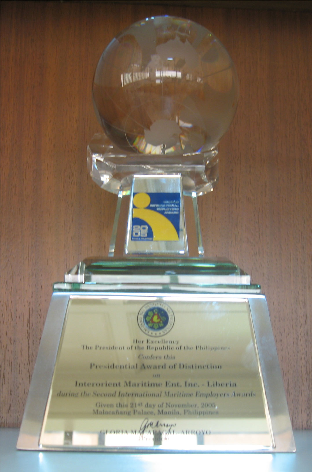 Interorient Maritime Enterprises, Inc. received with honor the Presidential Award of Excellence from her Excellency, President Gloria Macapagal-Arroyo during the ceromony that transpired last April 21, 2010 at the Malacañang Palace, Rizal Hall.