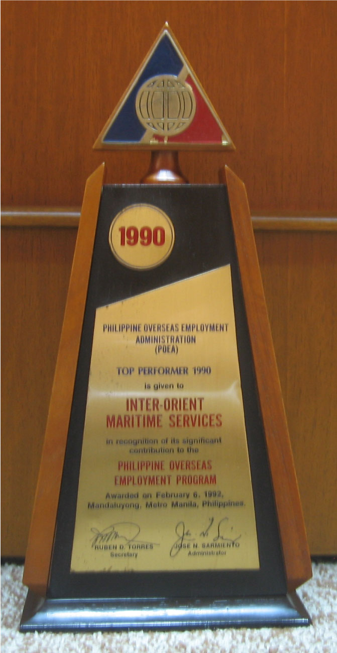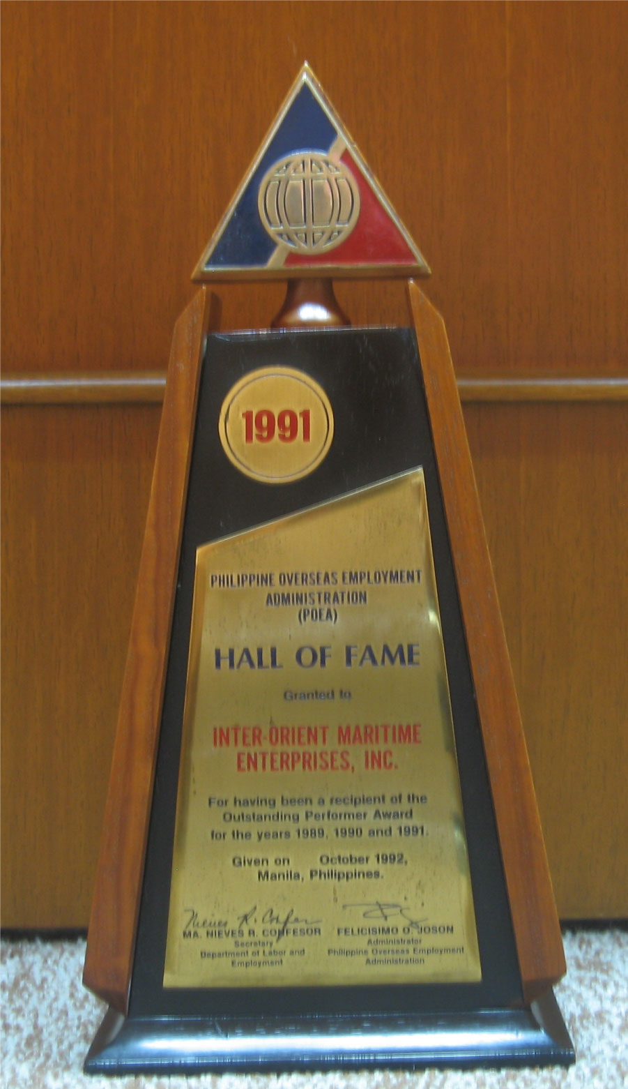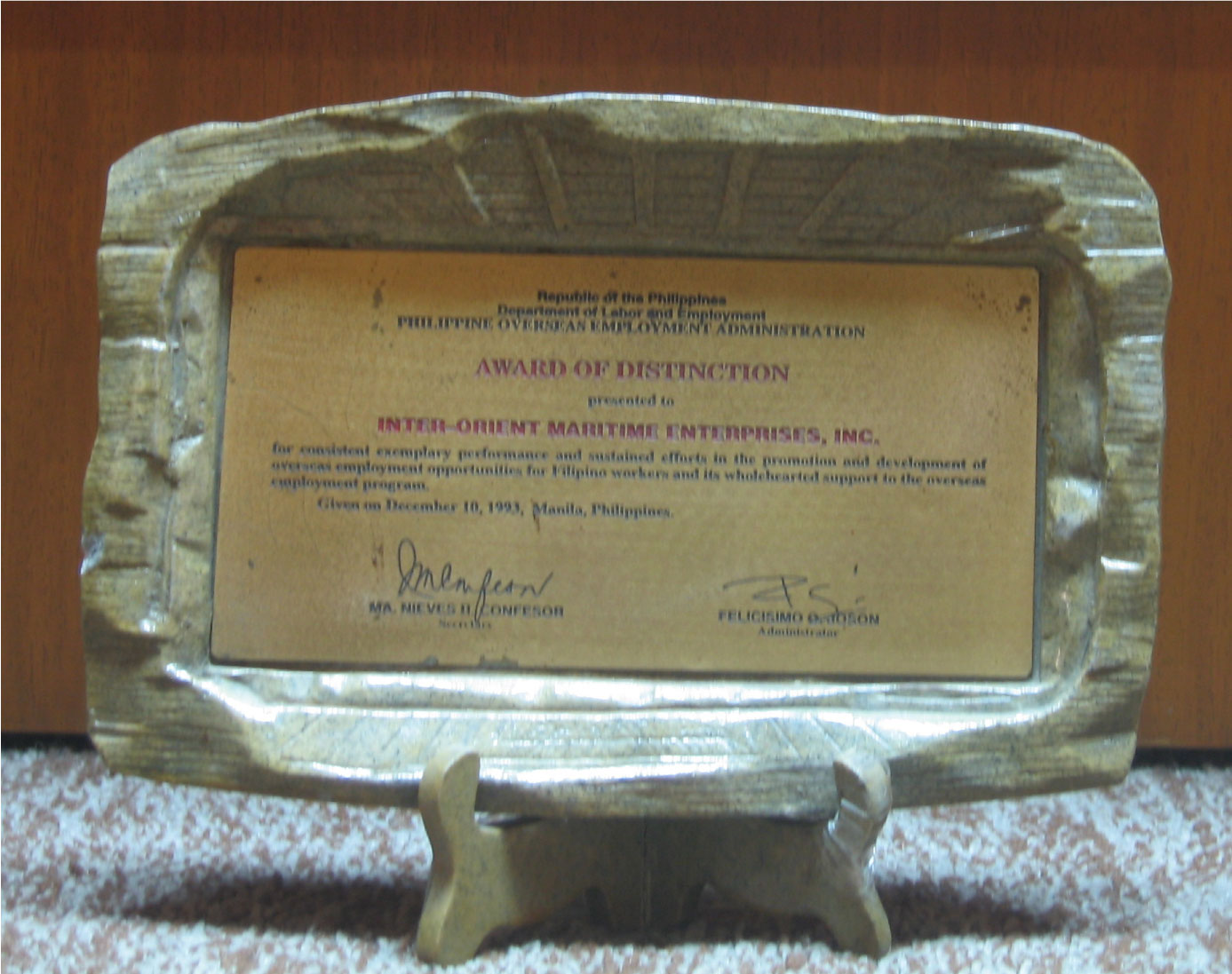 Interorient Maritime Enterprises, Inc. received with honor the Presidential Award of Excellence from her Excellency, President Gloria Macapagal-Arroyo during the ceromony that transpired last April 21, 2010 at the Malacañang Palace, Rizal Hall.